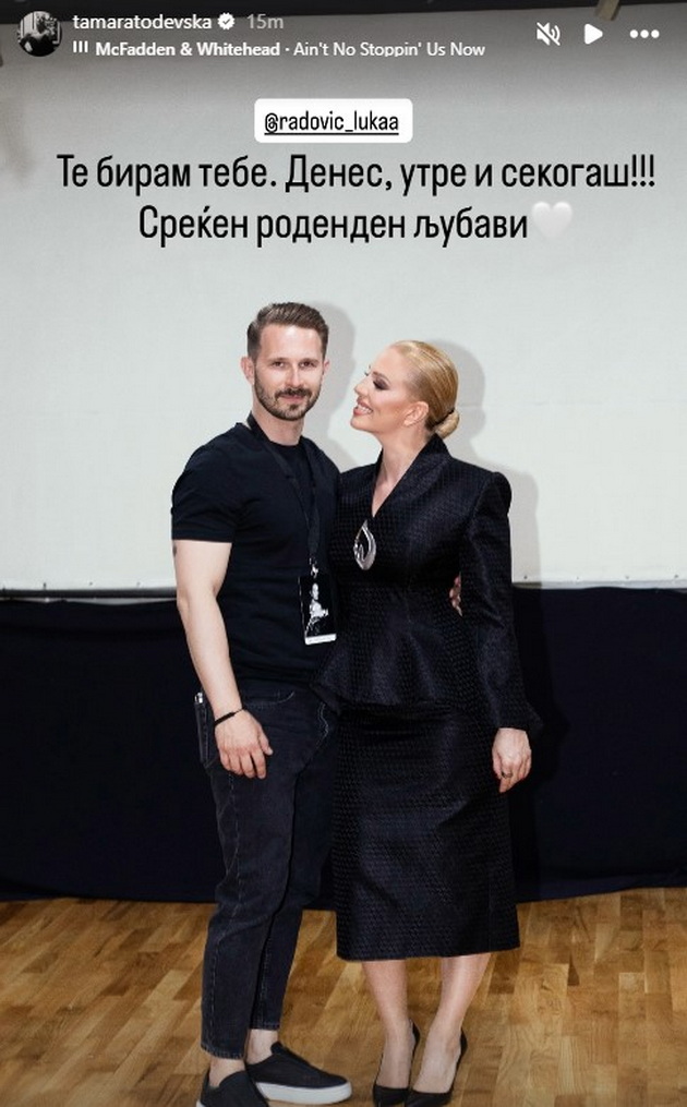 „Те бирам тебе. Денес, утре и секогаш! Среќен роденден љубави“, напиша Тамара Тодевска во описот на фотографијата со саканиот Лука, со што потврди дека љубовта им цвета.