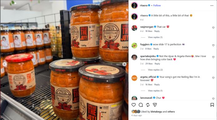 📸Рита Ора објави дека македонскиот ајвар „Перустија“ е дел од нејзиниот избор во Нов Зеланд!