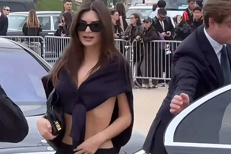Американската манекенка Емили Ратајковски позната е по своите разголени изданија, па така и овој пат, не остави многу на имагинацијата кога пристигна на ревијата на „Loewe“ во замокот Винсен за време на Модната недела во Париз.